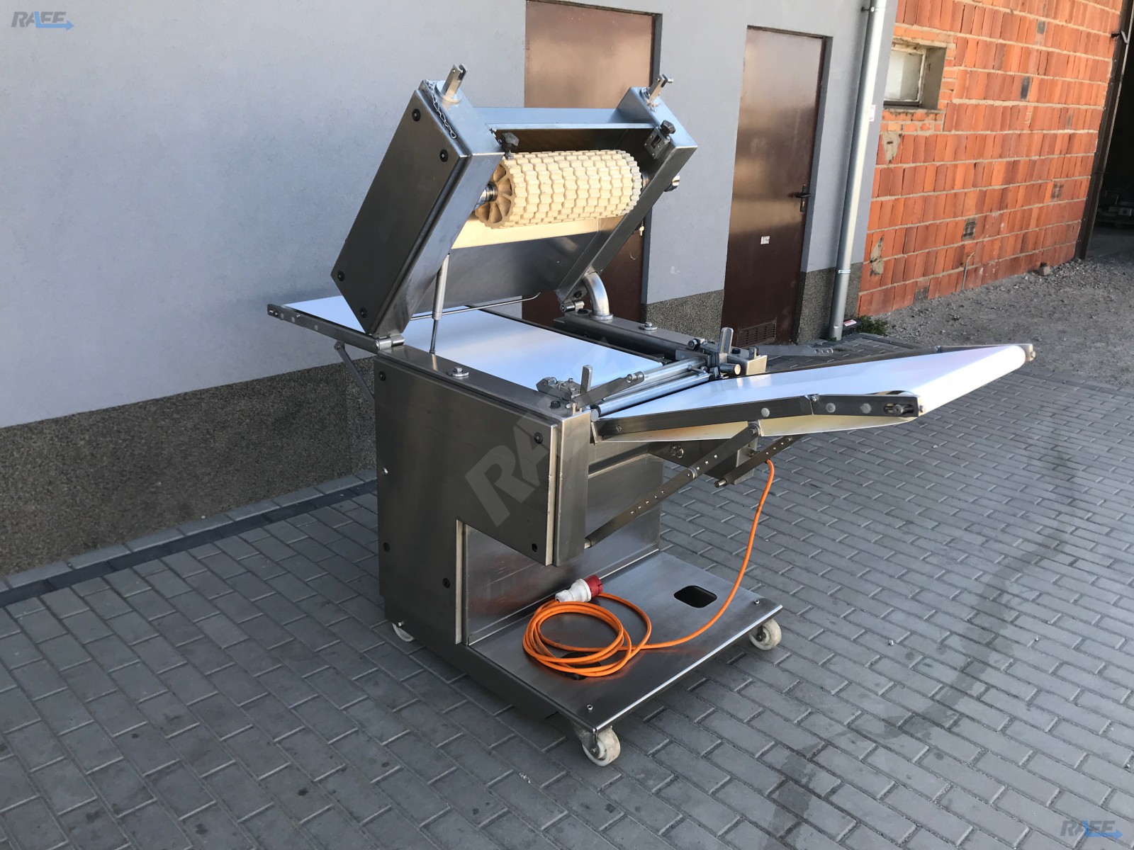 The Cretel 560A mobile derinding machine is a safe, reliable and precise machine suitable for the derinding of product. It is suitable for use in small good stores, commercial processors, butcher shops and other meat production facilities. It is a belt fed machine, with wheels allowing for easy maneuvering and re-positioning in the workplace.
