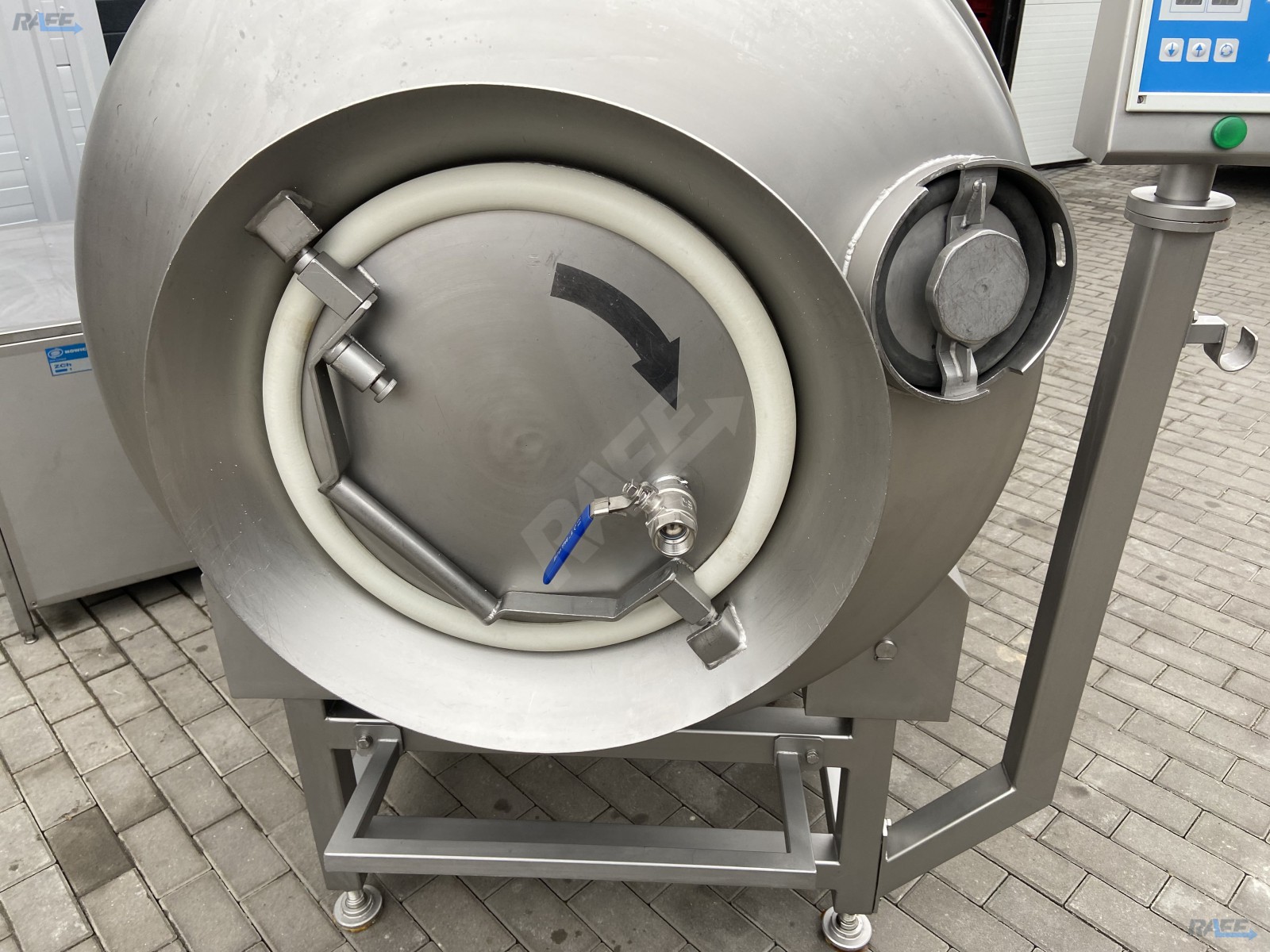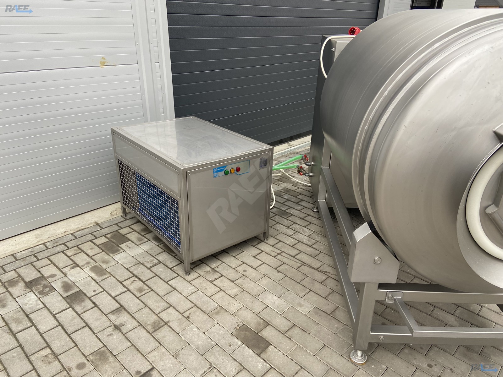 The Nowicki vacuum tumbler with a capacity of 1000 liters with the cooling option (with the cooling unit included) designed for plasticizing muscles, meat parts, small meats as well as poultry carcasses and parts in a vacuum. It ensures high quality of manufactured sausage products